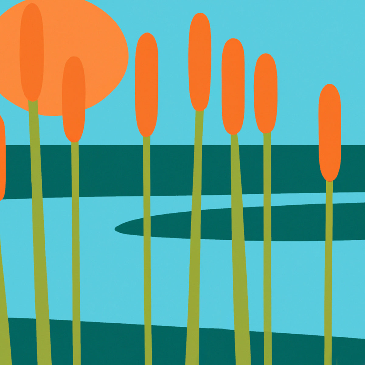 Each image features vibrant colors and bold lines, highlighting the iconic cattail's distinctive cylindrical shape.